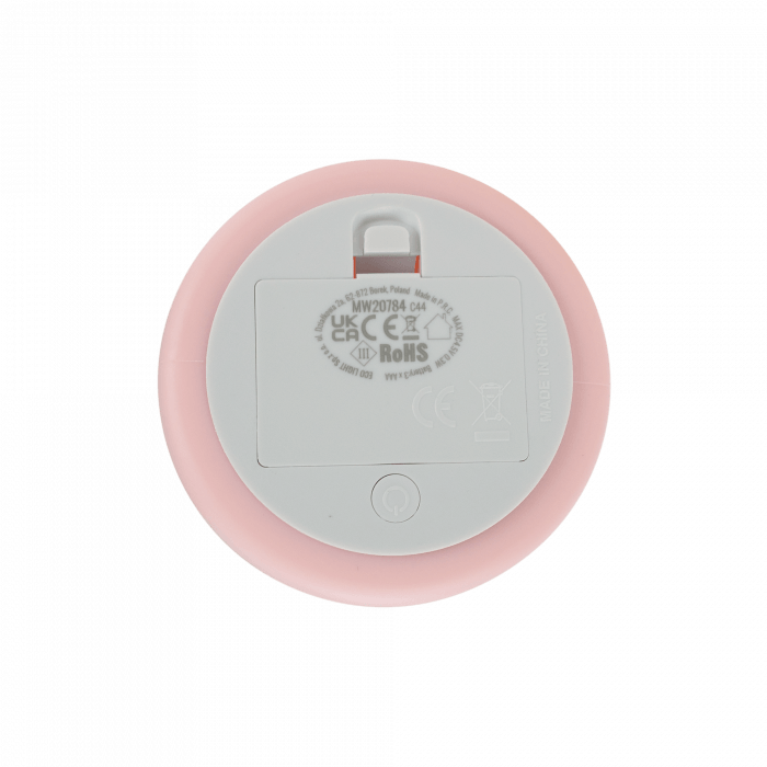 Słodki różowy miś-lampka, który świeci ciepłą bielą (3000 K) lub zmienia kolory dzięki RGB — jak światło z bajki! Ma bezpieczny silikonowy korpus i ABS, a zasilany jest trzema bateriami AAA. Lekki i przyjemny w dotyku — świetny jako towarzysz na noc i delikatna dekoracja do pokoju dziecka.