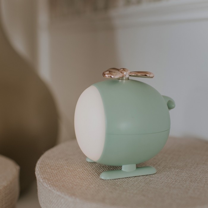 Zielony helikopter-lampka, który zabierze dziecko w podniebną podróż przed snem! Świeci dwiema barwami: bardzo ciepłą bielą (1800 K) lub zimniejszą (3000 K). Ma wbudowany akumulator 1200 mAh, ładuje się przez USB (3–4 h) i może świecić aż od 10 do 150 godzin, w zależności od jasności. Wykonany z bezpiecznych materiałów ABS i HIPS — świetny dodatek do pokoju dziecięcego jako dekoracja i delikatne światło nocne.