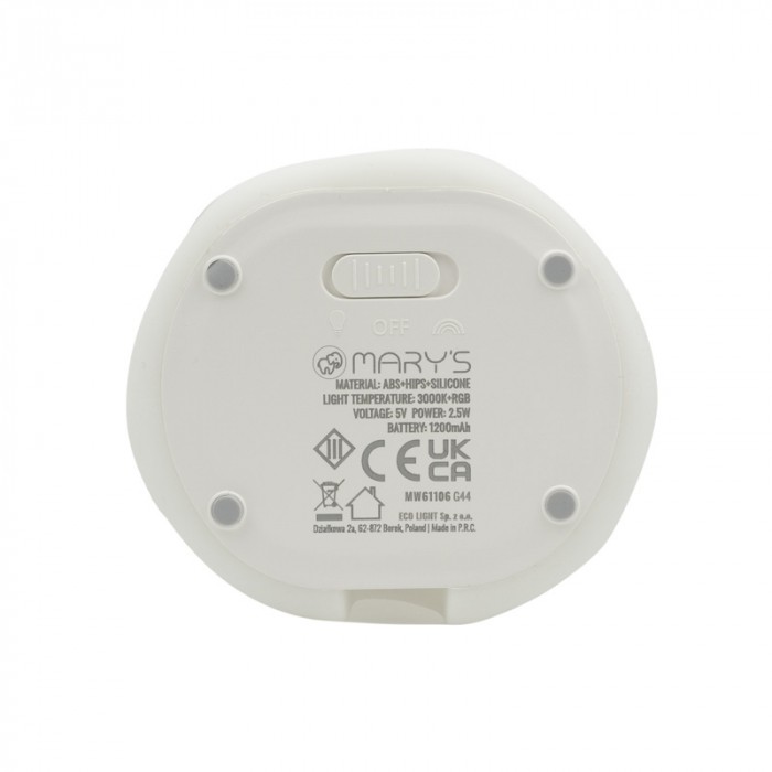 Delikatny aniołek-lampka, który świeci ciepłą bielą (3000 K) albo mieni się kolorami RGB — tworzy spokojną i magiczną atmosferę. Zasilany wbudowanym akumulatorem 1000 mAh, ładuje się przez USB w około 3 h i może świecić do 10 godzin. Miękki silikon i bezpieczny ABS sprawiają, że jest idealny jako nocny towarzysz – zarówno przy snach, jak i bajkach.