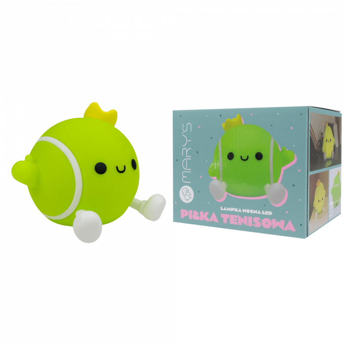Energetyczna lampka w kształcie piłki tenisowej — idealna dla małych sportowców! Świeci ciepłym światłem lub kolorowo dzięki funkcji RGB. Mięciutka w dotyku (silikon), ładuje się przez USB-C w 2-3 godziny i działa od 4,5 do 17 godzin. Świetna do pokoju dziecka lub jako oryginalny dodatek na biurko.