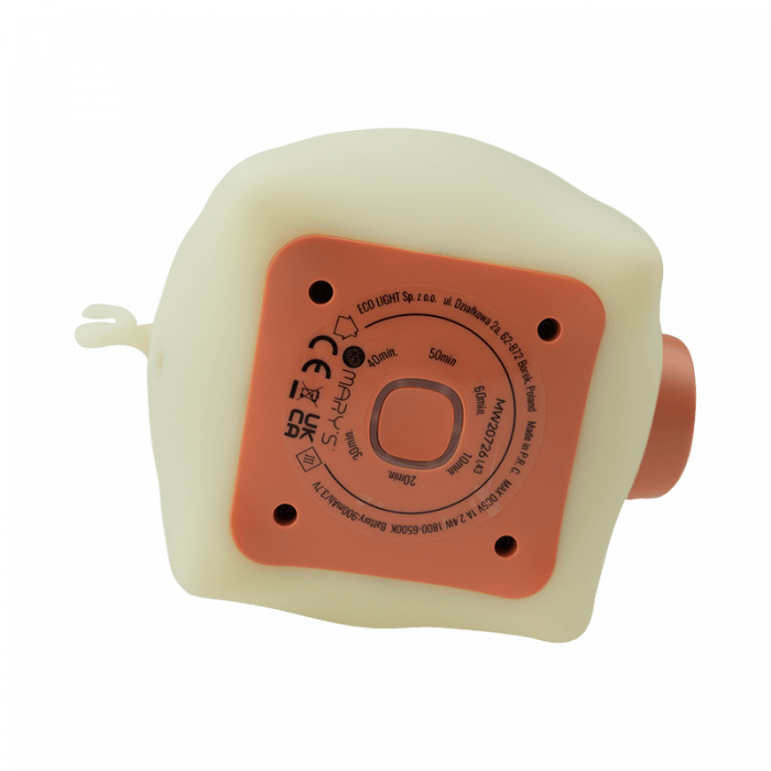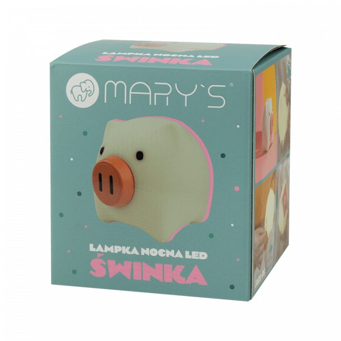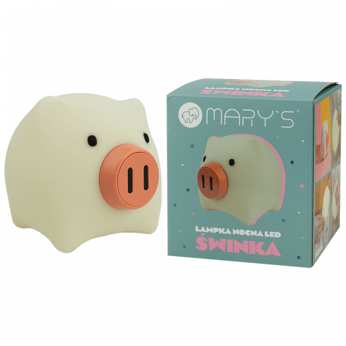 Urocza lampka-świnka, która świeci białym światłem w zakresie od bardzo ciepłego (1800 K) do zimniejszej bieli (6500 K). Ma wbudowany akumulator (900 mAh), ładuje się przez USB (ok. 3,5 h) i działa bardzo długo: do 200 godzin na niskiej jasności lub 3,5 h na pełnej. Wykonana z bezpiecznego silikonu, ABS i PC — świetna do dziecięcego pokoju, by dodać ciepła i uroku.
