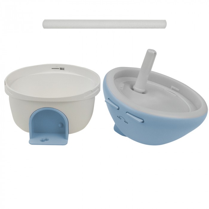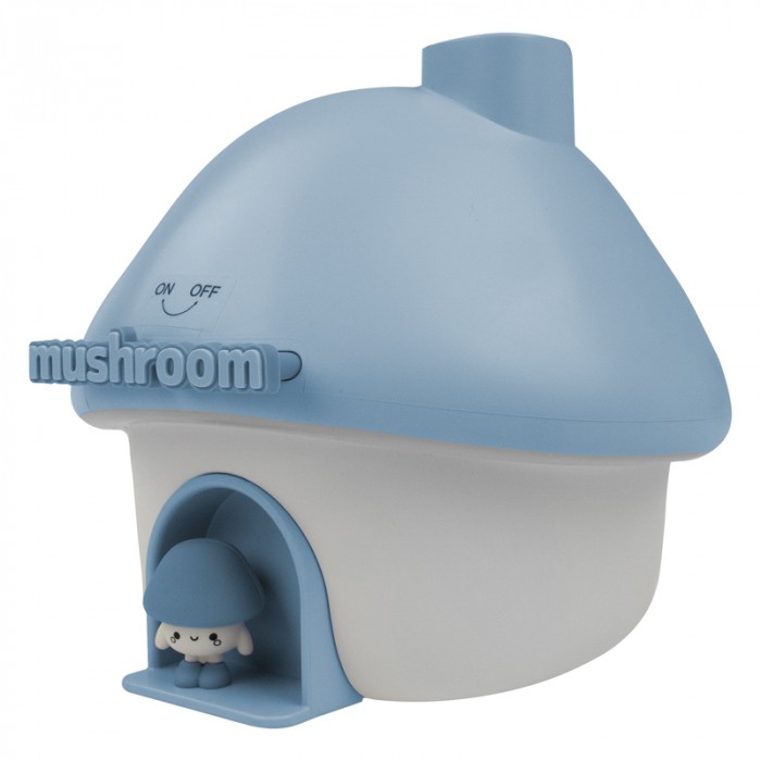 Uroczy niebieski grzybek, który z jednej strony działa jak mały nawilżacz, a z drugiej mieni się delikatnym światłem LED. Tworzy mgiełkę, która nawilża powietrze w pokoju dziecka, a dzięki kolorowym diodom można ustawić ciepłe lub tęczowe światło. Ma ładowanie przez USB-C oraz akumulator, więc można go postawić gdziekolwiek bez połączenia z gniazdkiem. Idealny kompan na wieczorne opowieści i spokojny sen.